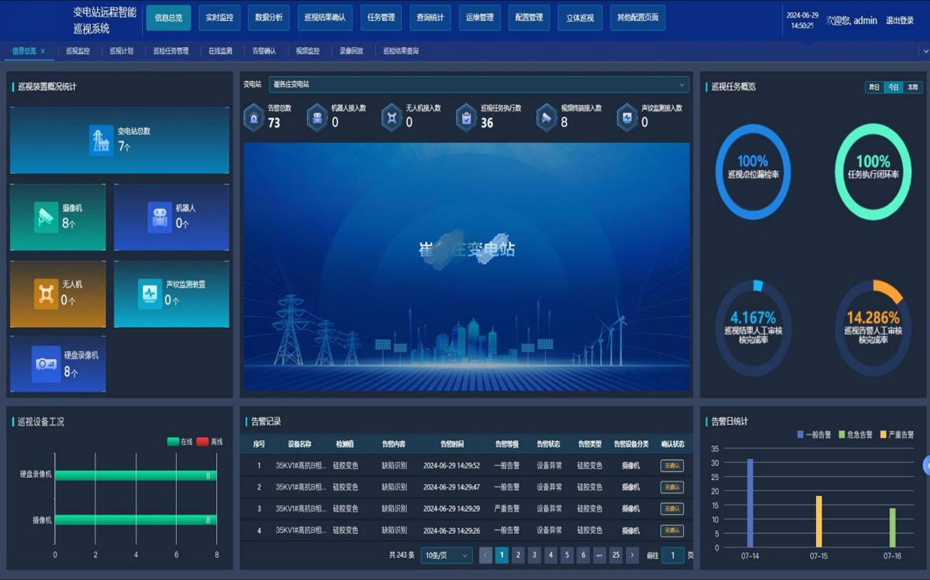 變電站遠(yuǎn)程智能巡視系統(tǒng)通過巡視主機(jī)、智能分析主機(jī),融合機(jī)器人、無人機(jī)、攝像機(jī)、聲紋監(jiān)測裝置等數(shù)據(jù)信號,具備數(shù)據(jù)采集、自動巡視、智能分析、實時監(jiān)控等功能,可實現(xiàn)站內(nèi)設(shè)備狀態(tài)全面感知、倒閘操作一鍵順控、主輔智能聯(lián)動等功能,可有效提升電網(wǎng)運維智能決策能力。