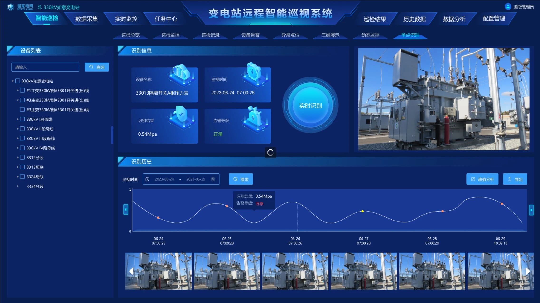 變電站遠(yuǎn)程智能巡視通過運用傳感器、監(jiān)控設(shè)備和數(shù)據(jù)通信網(wǎng)絡(luò)等手段,結(jié)合圖像視頻、機器人、聲紋、在線監(jiān)測等智能傳感裝置,充分借助物聯(lián)網(wǎng)、AI智能、大數(shù)據(jù)分析等技術(shù),實現(xiàn)變電站內(nèi)設(shè)備外觀、表計指示、在線監(jiān)測等設(shè)備特征的自動巡視、數(shù)據(jù)采集、智能分析告警等功能,提升對變電站智能化監(jiān)控和遠(yuǎn)程管理,為保障電力系統(tǒng)的穩(wěn)定運行提供有力支持。