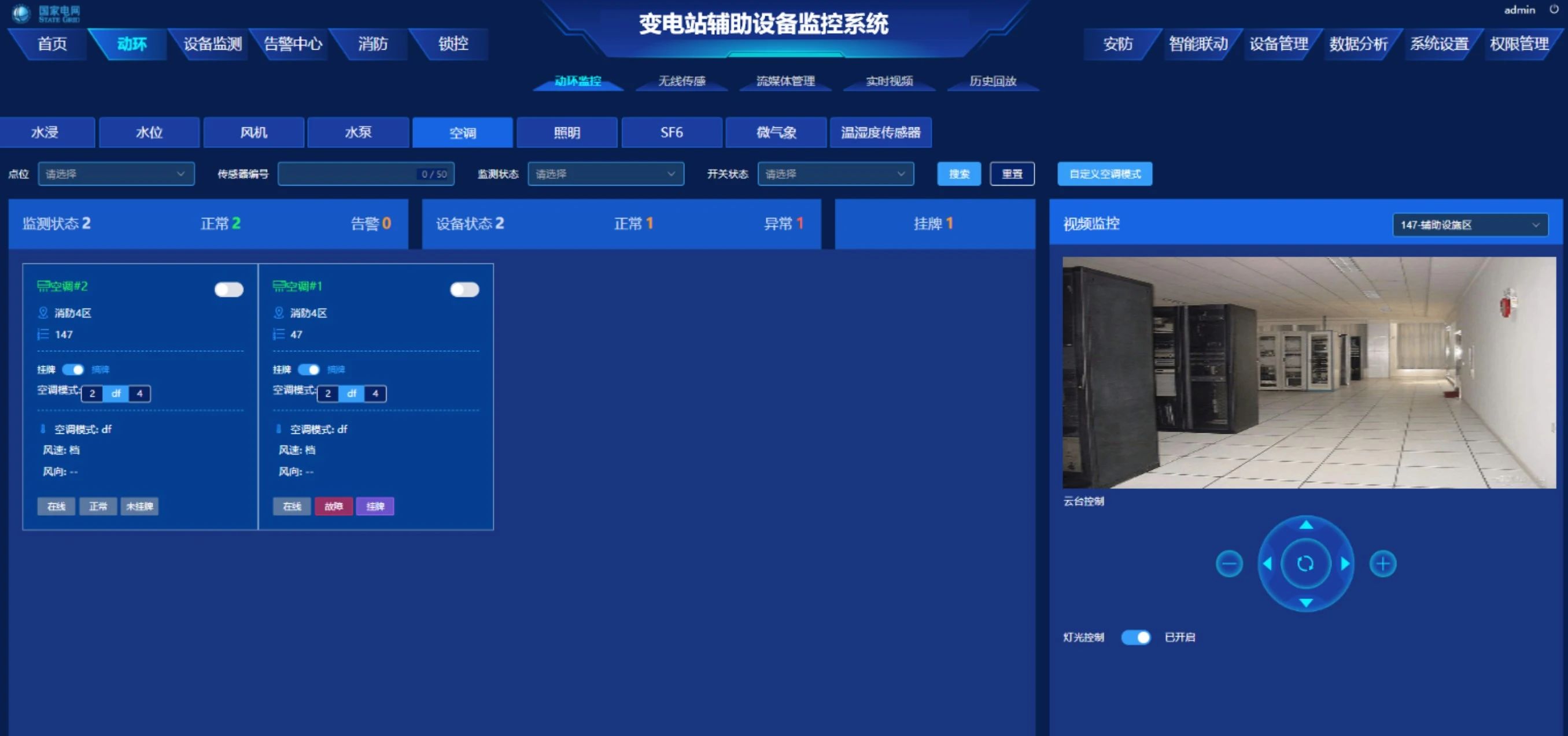 實時監(jiān)測SF? 、O?氣體濃度、對水泵、空調(diào)、水浸、風(fēng)機和照明等設(shè)備狀態(tài)與環(huán)境全面監(jiān)控,確保設(shè)備正常運行,及時預(yù)警風(fēng)險,提升設(shè)備管理效率。